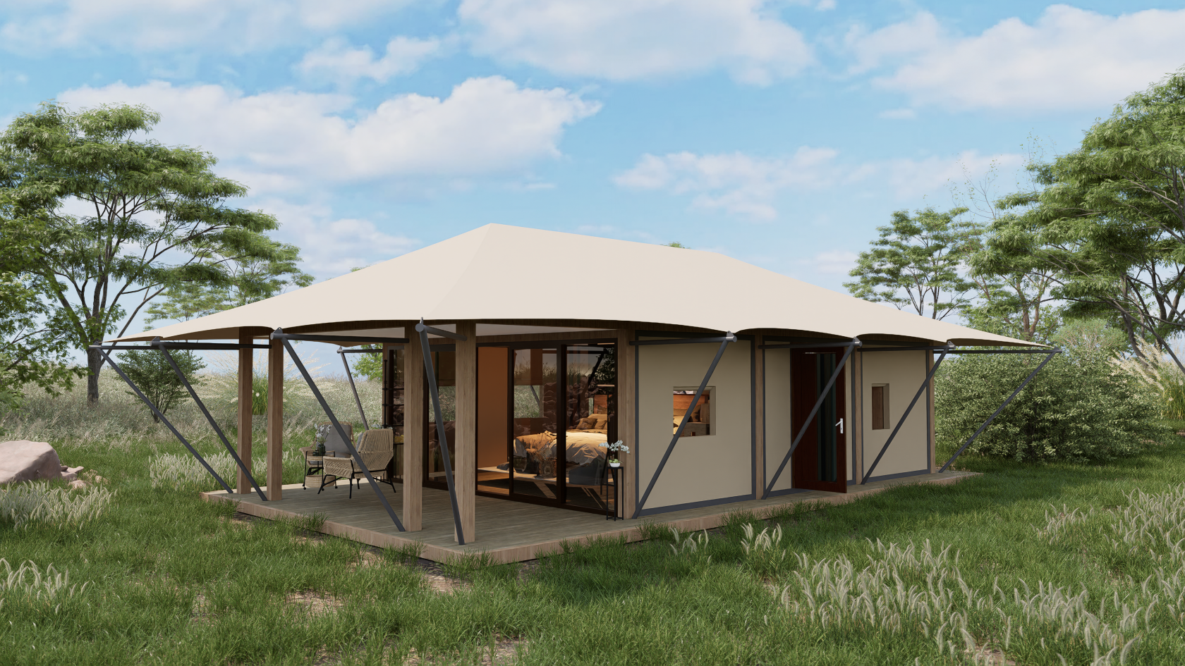 墙体:保温硬体墙+双层中空玻璃规格:5.6m*10m
